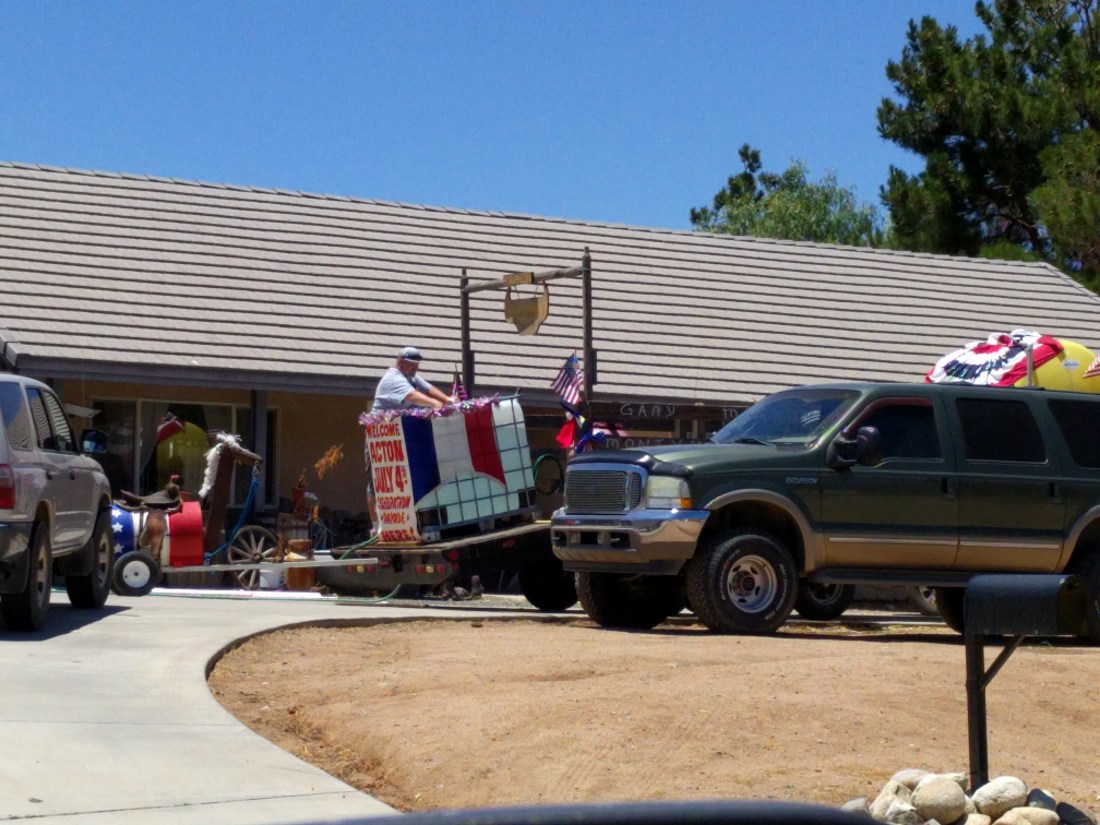 ברוכים הבאים למצעד הארבעה ביולי השנתי של אקטון, קליפורניה! איך שהגענו, זוהינו על ידי פרנסיות העיירה מהמסיבה אתמול, וכך הוזמנו להצטרף לשורה של המקובלים והמגניבים.