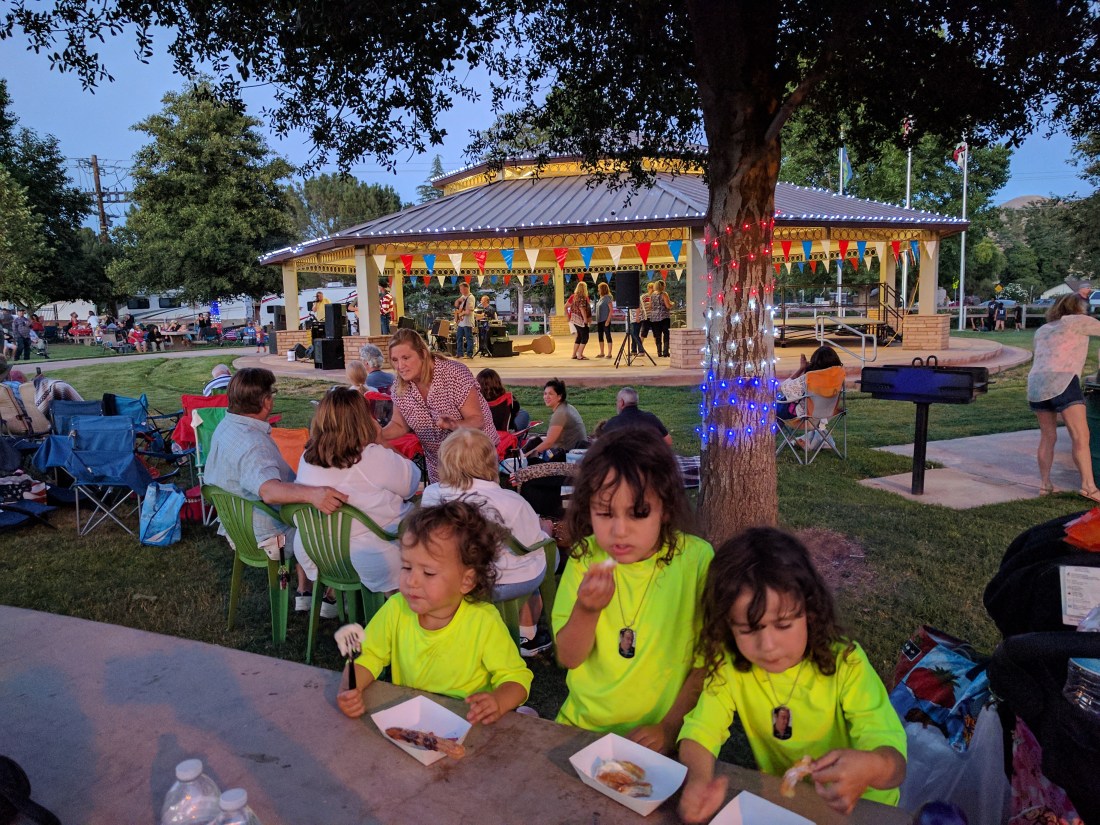 רגע! עוד לפני מצעד הארבעה ביולי מחר בבוקר, הייתה בערב קודם המסיבה, על מגרש הספורט של אקטון. אני מתרשם שחלק גדול מתושבי העיירה נכחו שם.