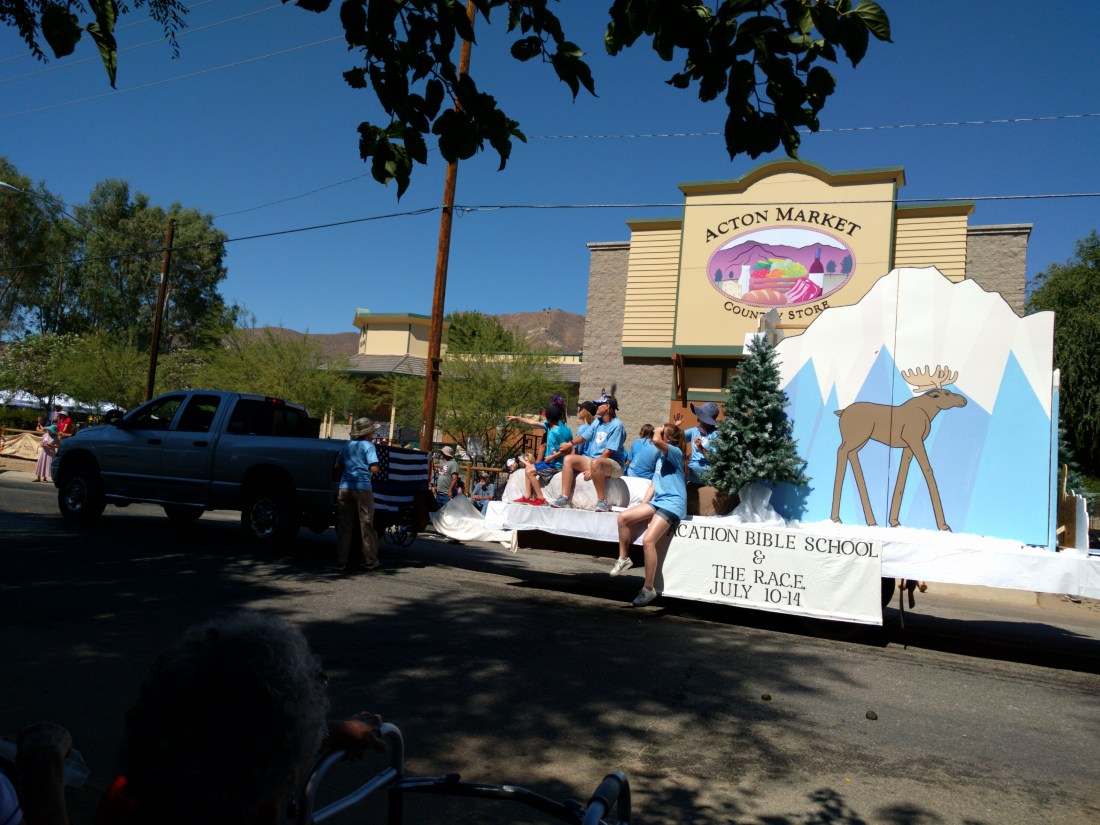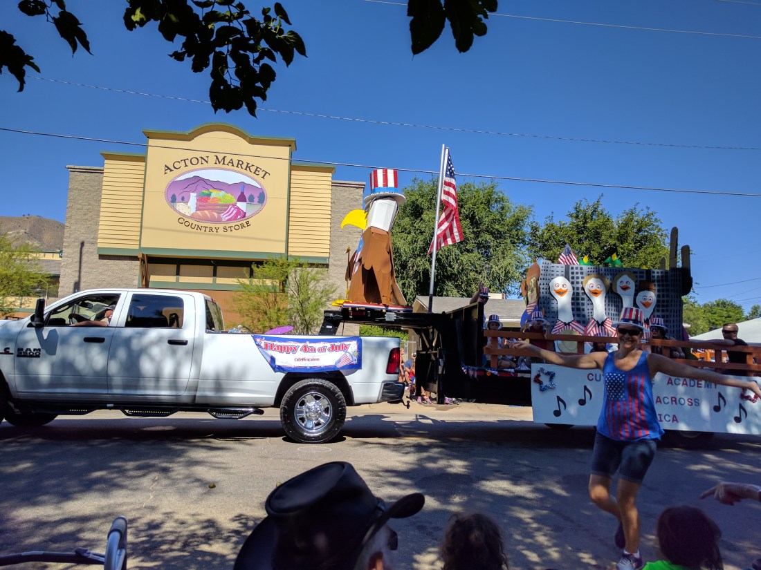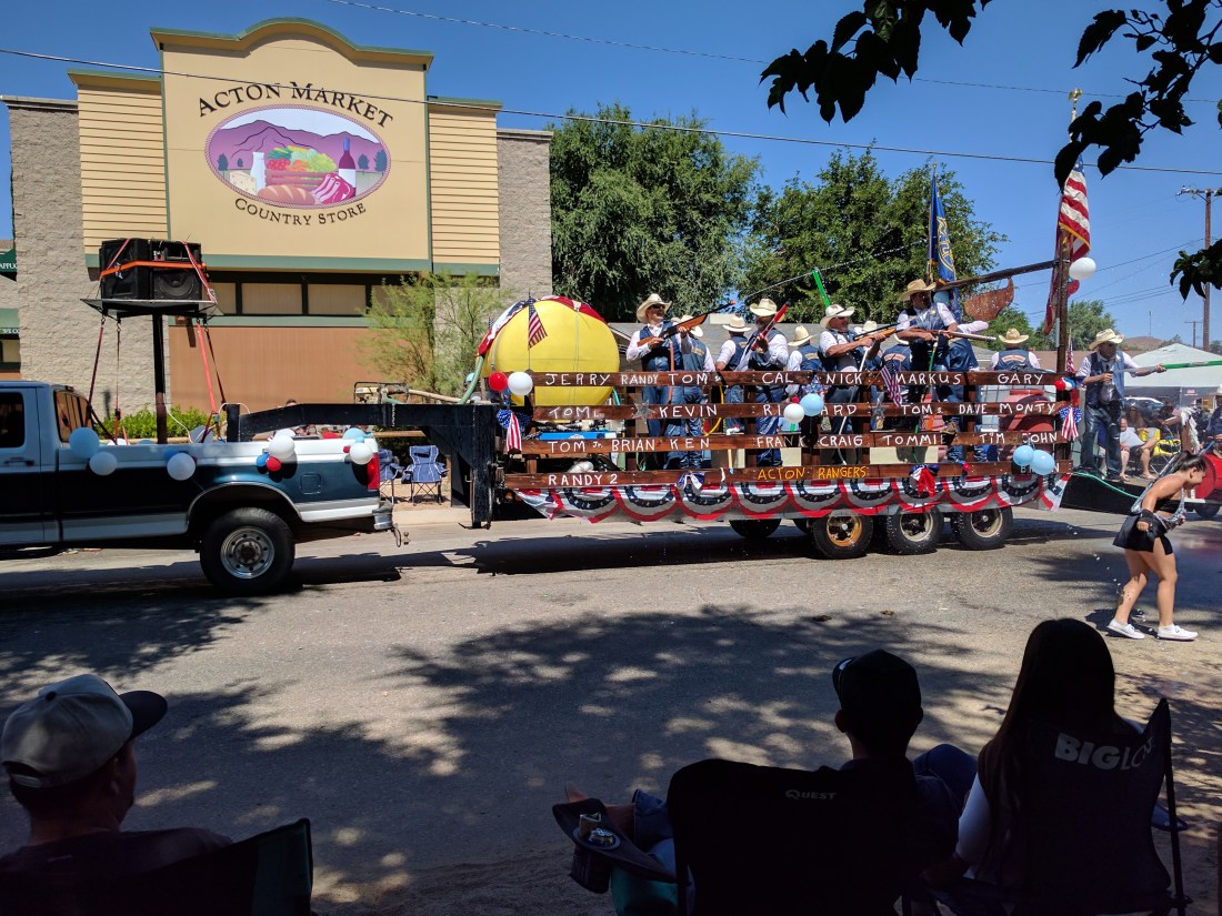 אקטון היא עיירה חקלאית מנונמנת ומאובקת מעבר לפסי הרכבת מפארק-הקרוואנים שלנו, על ספר המדבר שמצפון-מזרח ללוס-אנג'לס. ממה שראינו בינתיים, כולם מתכוננים במרץ למצעד הארבעה ביולי בבוקר מחר. לפני שבוע, כשבאנו, ראינו המון כיסאות פלסטיק שומרים הרבה מאות מטרים לאורך הכביש הראשי. אז לא הבנו למה.